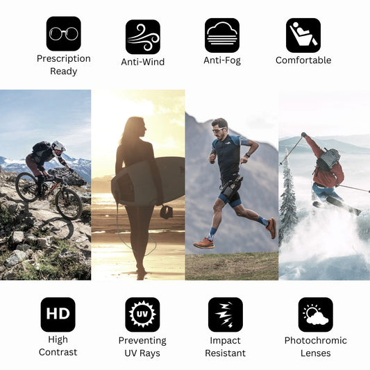 Our high-tech photochromic lenses make biking glasses exceptionally adaptable to changing light conditions.This means that as you ride, the lenses will darken or lighten depending on the amount of sunlight present. This feature is especially helpful when cycling in areas with varying levels of shade, such as wooded trails or urban environments.